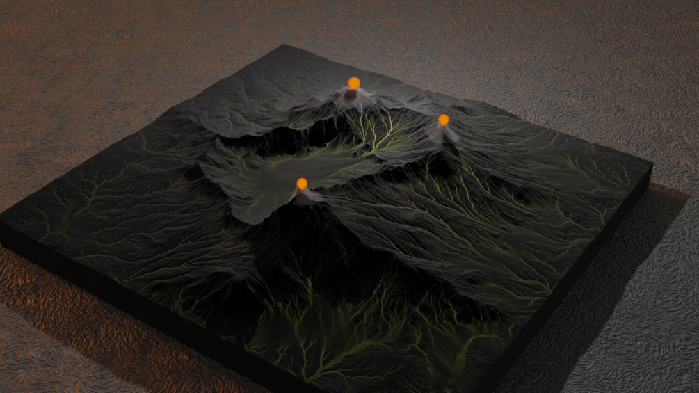 This scene shows the capability of the Manta flow engine within Blender 2.93 in capturing the interaction between fluid mesh and an extremely high poly solid mesh. Comparing to the flip fluid that has to import the solid mesh first, which will takes ages if not impossible to do on a low RAM machine, the manta flow is a much more convenient option in this case. Baked for 45 hrs and rendered for 23hrs. The terrain is too heavy to post on this, go to https://ambientcg.com/view?id=Terrain003 and download the .obj file you want, then import to this blender file. Scale the terrain down so it fits into the fluid domain (cube object)